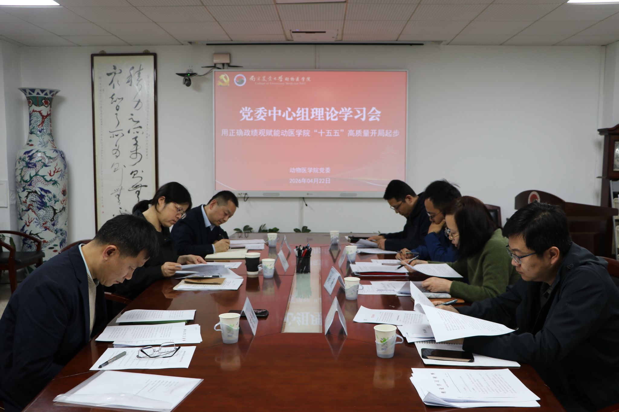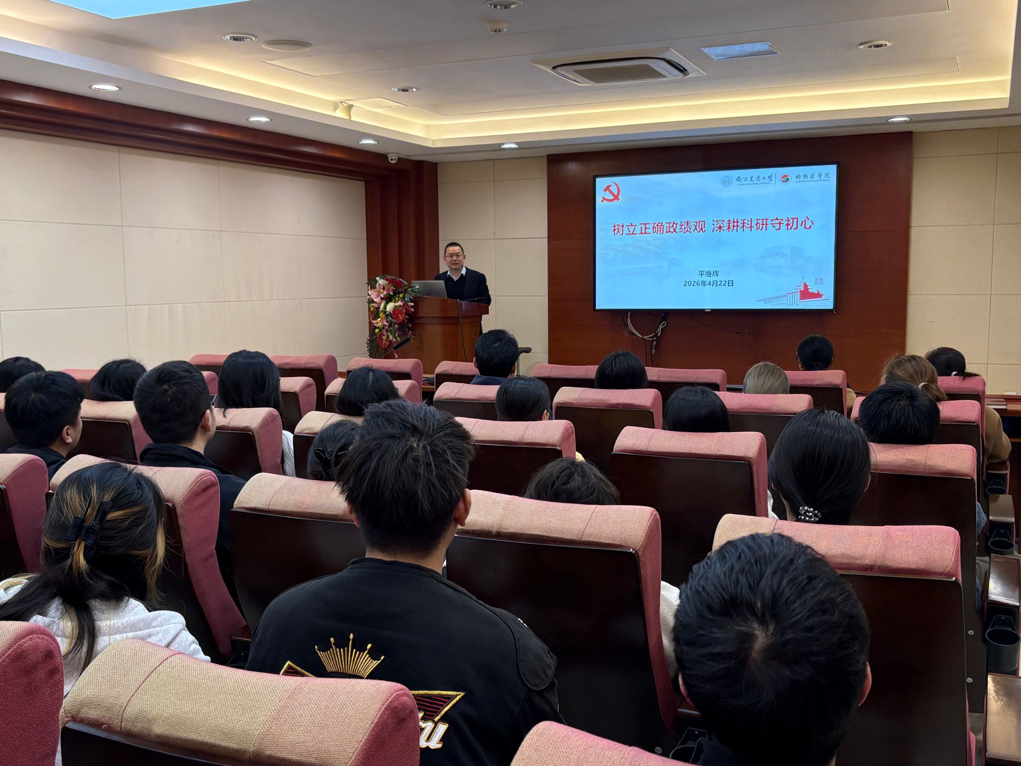 4月22日中午,动物医学院党委在逸夫楼3036会议室召开党委理论学习中心组学习会,会议以“用正确政绩观赋能动医学院‘十五五’高质量开局起步”为主题,深学原文原著、开展警示教育并深入交流研讨。副校长冯淑怡列席并指导学习会,学院领导班子全体成员参加会议,会议由学院党委副书记(主持工作)平继辉主持。会上,班子成员分别领学《求是》杂志发表的习近平总书记重要文章《树立和践行正确政绩观》《关于加强党建带团建工作的...