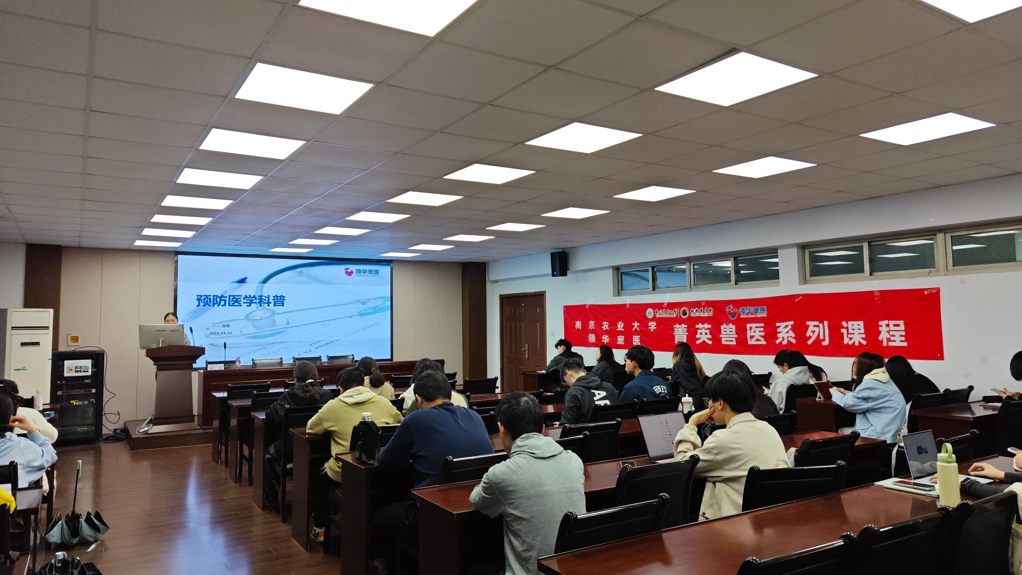 4月22日晚,南京农业大学动物医学院第五期菁英兽医系列课程顺利开展。本次讲座特邀我院优秀毕业生、领华宠医主治医生张茜返校授课,围绕宠物预防医学核心内容,为学子带来实用专业的临床知识分享。张茜医生深耕宠物预防保健领域,拥有丰富的门诊、住院与化验室工作经验。课堂上,她以临床实操为导向,系统讲解免疫流程、规范驱虫、预防体检三大关键模块,详细介绍犬猫常用疫苗种类、首免与加强免疫程序、抗体检测标准及过敏应对...