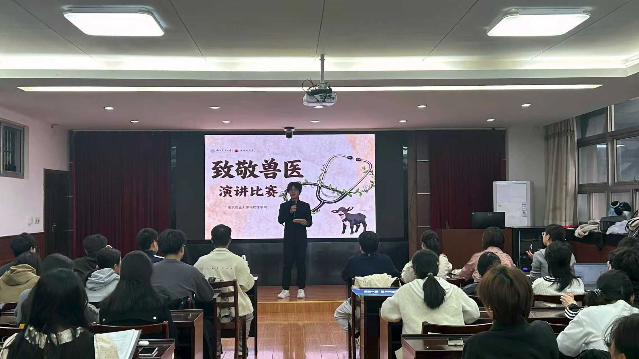 2025 年 11 月 13 日晚,南京农业大学动物医学院 “仁心守生命,妙手护生灵” 致敬兽医演讲比赛在生科楼报告厅顺利举办。动医类 2501 班班主任倪迎冬、2505 班班主任武琳娟及辅导员安琪、于洪泽担任本次比赛评委。本次比赛以 “初遇兽医”“我想成为怎样的兽医”“致敬兽医精神” 三层递进主题为脉络,16 名动医学子依次登台分享。选手们或讲述与兽医职业的初遇故事,或勾勒理想兽医的职业画像,或致敬行业前辈的坚守与奉献,从...