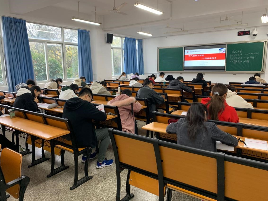 模拟考试的时间及流程严格按照正式考试的标准进行。所有同学提前十五分钟进入考场,并由学习部同学依次检查证件;八点整,模拟考试正式开始。考试过程中,同学们专心致志,认真审题仔细作答。